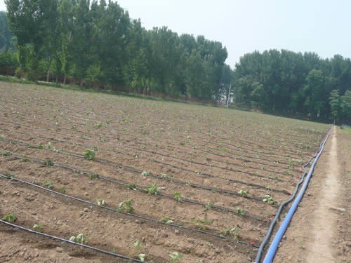 ● 內(nèi)鑲式滴灌管采用紊流流道,具有一定的補償作用,平地上