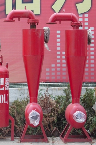 離心式過(guò)濾器基于重力及離心力的工作原理,清除重于水的固體顆粒。水由進(jìn)水管切向進(jìn)入離心過(guò)濾器體內(nèi),旋轉(zhuǎn)產(chǎn)生離心力,推動(dòng)泥沙及密度較高的固體顆粒沿管壁流動(dòng),形成旋流,使沙子和石塊進(jìn)入集砂罐,凈水則順流沿出水口流出,即完成水砂分離。
